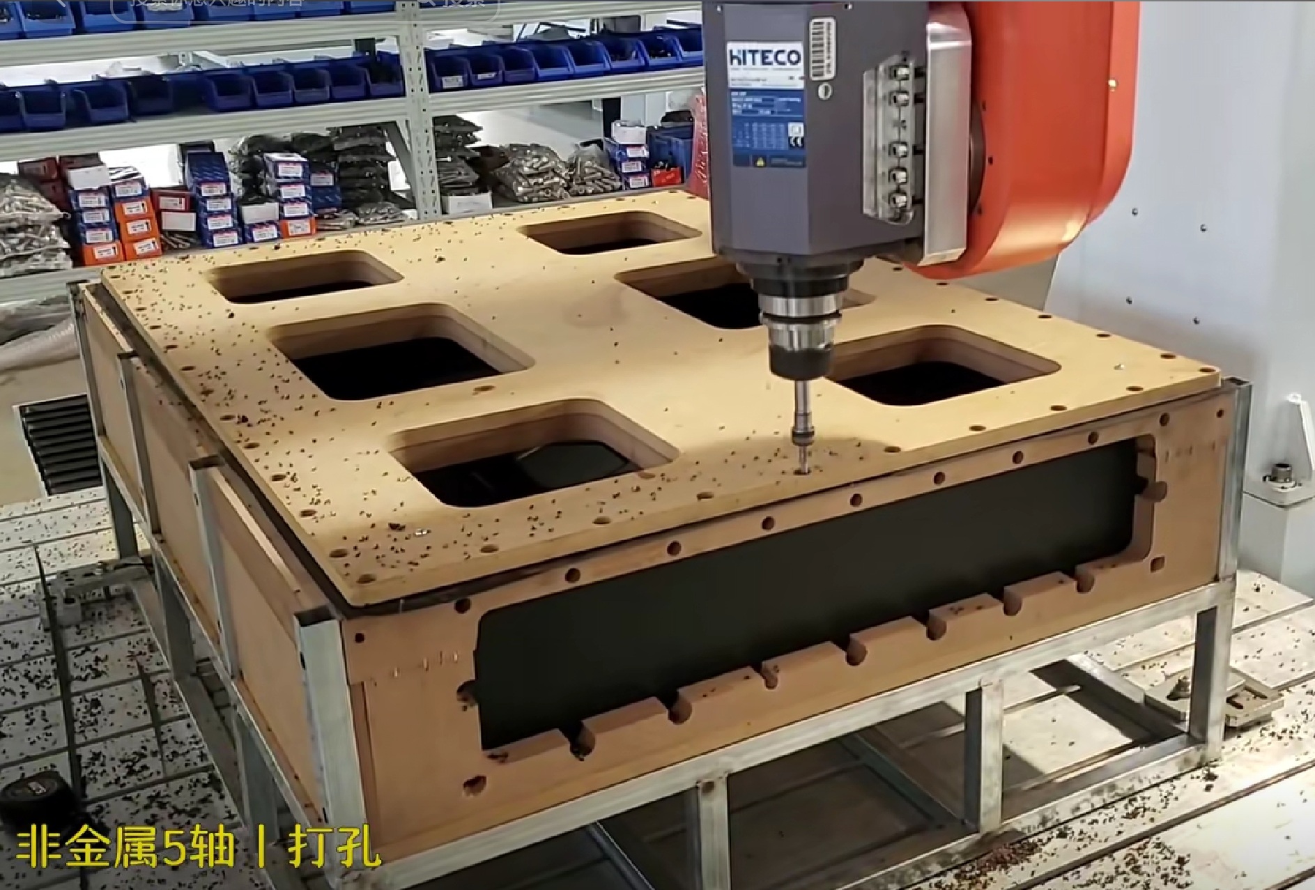 एक पांच-अक्ष मशीनिंग केंद्र प्लास्टिक उत्पादों को जल्दी और सटीक रूप से काट सकता है।